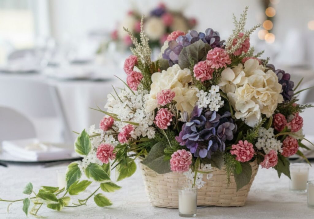 cottage flower arrangement with background replaced